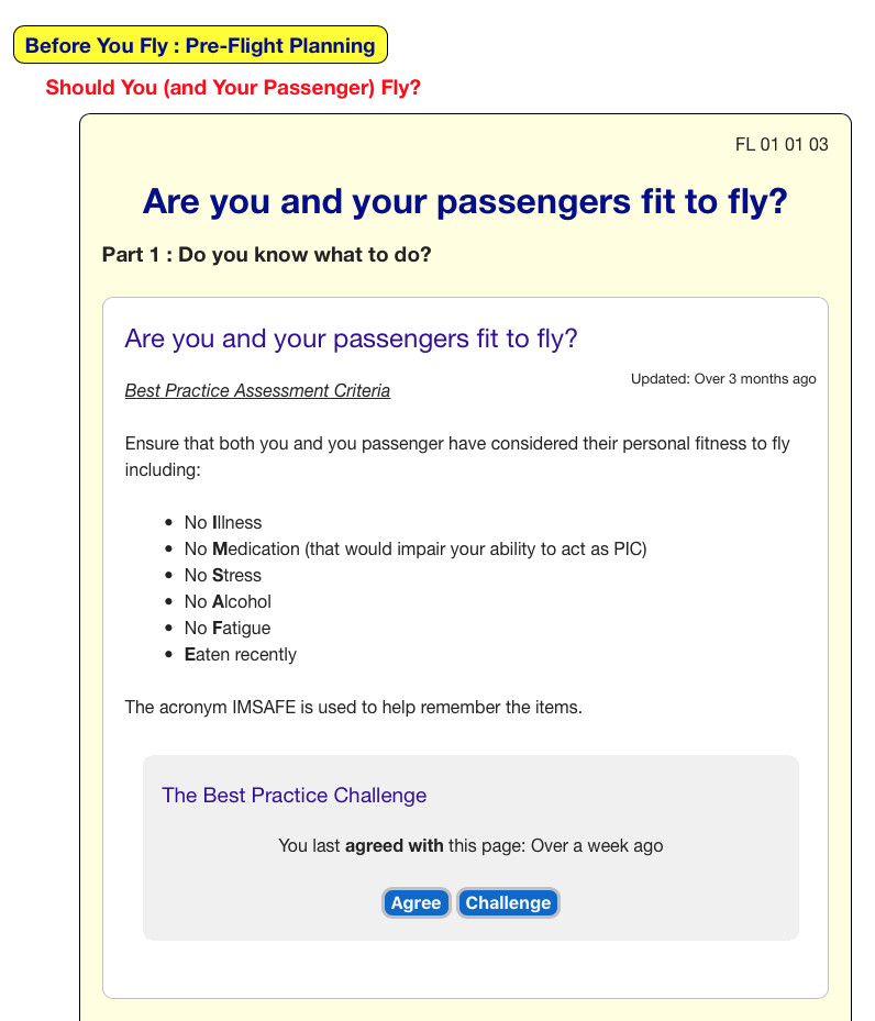 - If our definition matches the technique that an instructor already uses, or the instructor has decided to adopt that technique, we ask them to click the Agree button. This tells their peer group and their students that they are teaching Best Practice for that component of a flight.